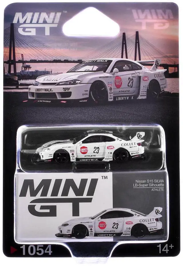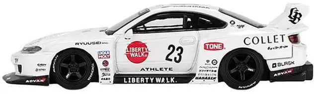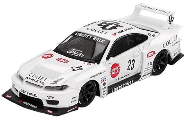 Brand new 1/64 scale diecast car model of Nissan Silvia (S15) LB-Super Silhouette RHD (Right Hand Drive) #23 "Athlete" White with Graphics Limited Edition die cast model car by Mini GT.
