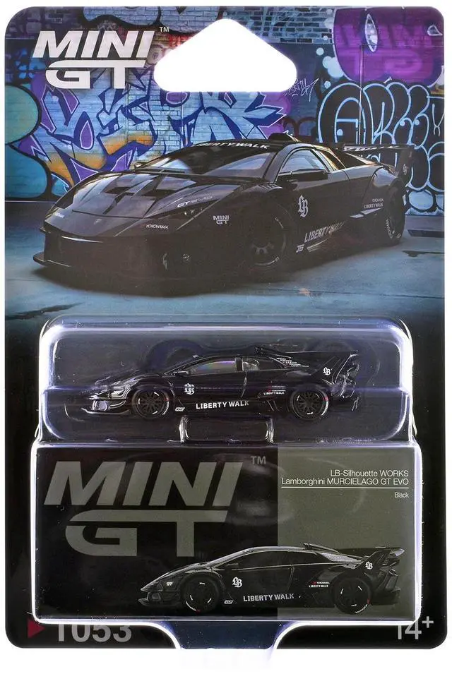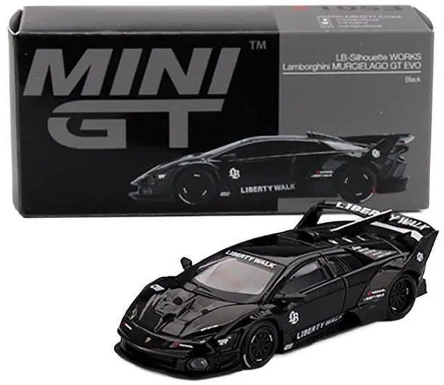 Brand new 1/64 scale diecast car model of Lamborghini Murcielago GT EVO LB-Silhouette Works Black Limited Edition die cast model car by Mini GT.