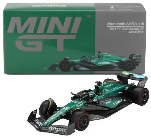 Brand new 1/64 scale diecast car model of Aston Martin AMR24 #18 Lance Stroll Formula One F1 "Bahrain GP" (2024) Limited Edition die cast model car by Mini GT.