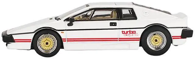 Brand new 1/64 scale diecast car model of Lotus Esprit Turbo RHD (Right Hand Drive) White with Red Stripes 007 James Bond "For Your Eyes Only" (1981) Movie Limited Edition die cast model car by Mini GT.