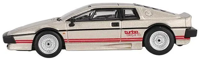 Brand new 1/64 scale diecast car model of Lotus Esprit Turbo Silver Metallic with Red Stripes Limited Edition die cast model car by Mini GT.