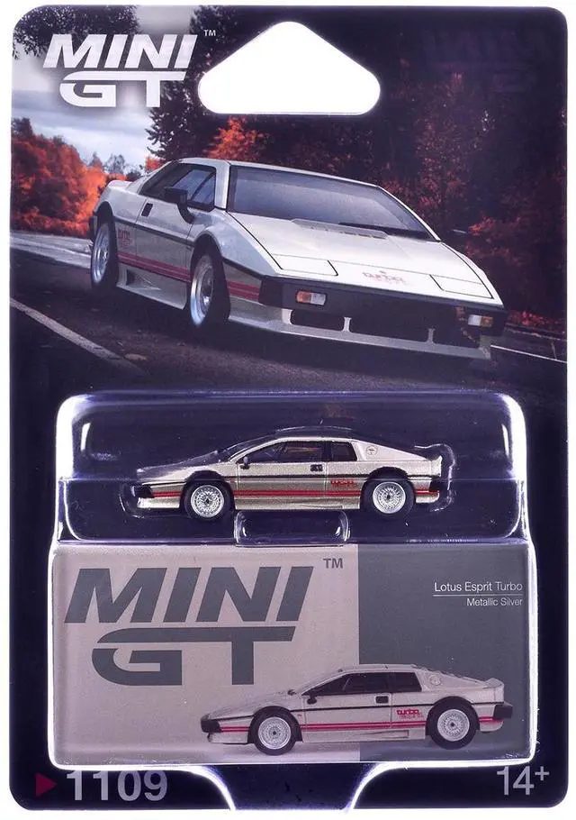 Brand new 1/64 scale diecast car model of Lotus Esprit Turbo Silver Metallic with Red Stripes Limited Edition die cast model car by Mini GT.