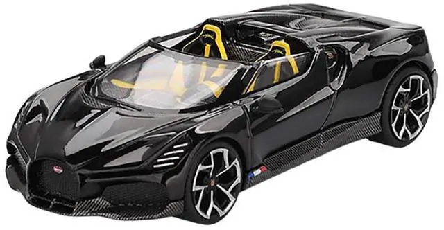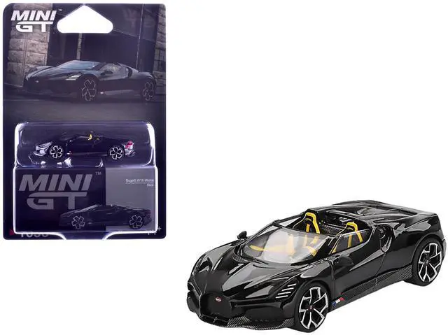 Brand new 1/64 scale diecast car model of Bugatti W16 Mistral Black with Yellow Interior Limited Edition die cast model car by Mini GT.