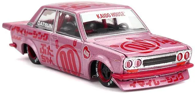 Brand new 1/64 scale diecast car model of Datsun 510 Pro Street #00 "Buta V1" Pink Metallic with Red Graphics (Designed by Jun Imai) "Kaido House" Special die cast model car by Mini GT.
