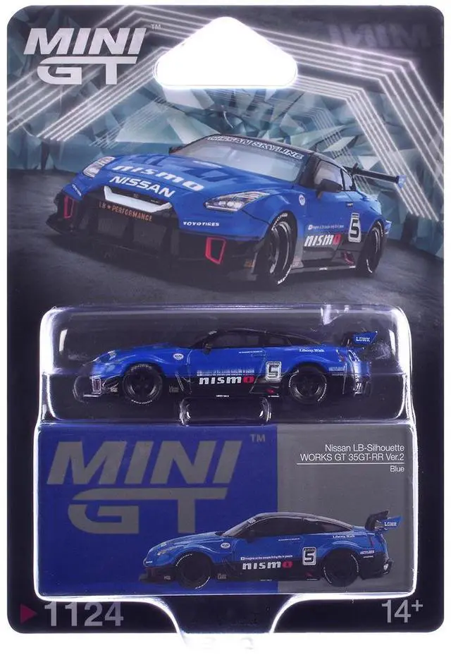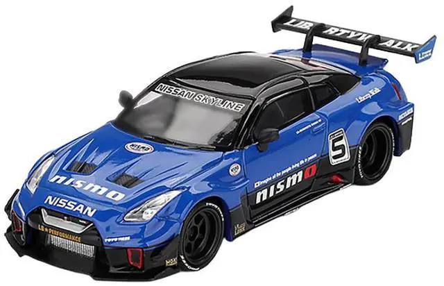 Brand new 1/64 scale diecast car model of Nissan 35GT-RR Ver. 2 "LB-Silhouette Works GT" #5 Blue with Black Top Limited Edition die cast model car by Mini GT.