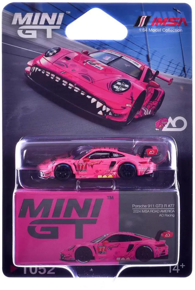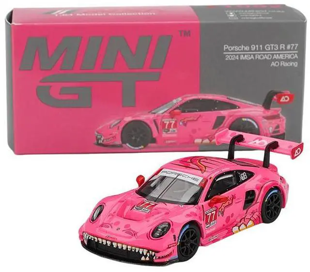 Brand new 1/64 scale diecast car model of Porsche 911 GT3 R #77 Julien Andlauer - Laurin Heinrich "AO Racing Roxy" GTD Pro "IMSA SportsCar Weekend - Road America" (2024) Limited Edition die cast model car by Mini GT.