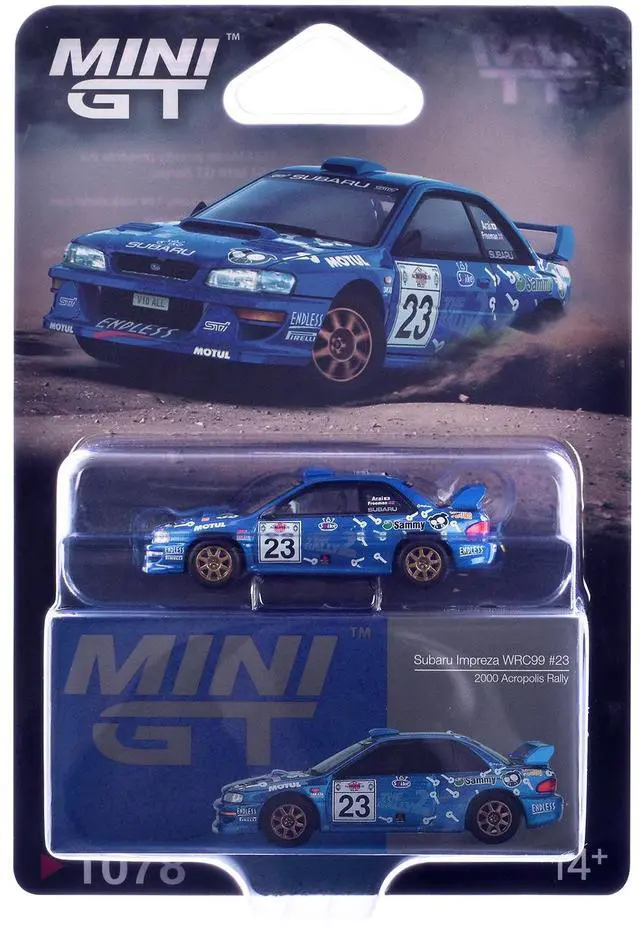 Brand new 1/64 scale diecast car model of Subaru Impreza WRC99 #23 Richard Burns - Roger Freeman "Acropolis Rally" (2000) Limited Edition die cast model car by Mini GT.