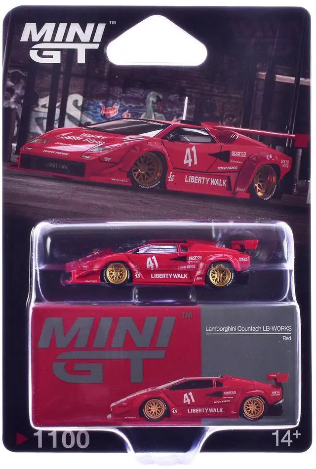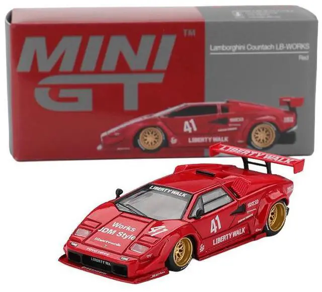 Brand new 1/64 scale diecast car model of Lamborghini Countach LB-WORKS #41 Red Limited Edition die cast model car by Mini GT.