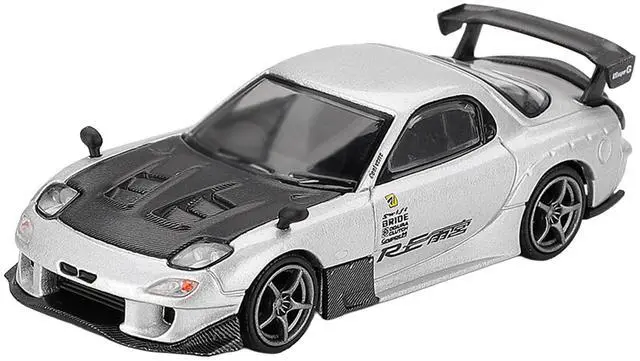 Brand new 1/64 scale diecast car model of Mazda RX-7 RE-Amemiya Silver Metallic with Matt Black Hood Limited Edition die cast model car by Mini GT.
