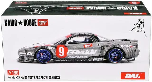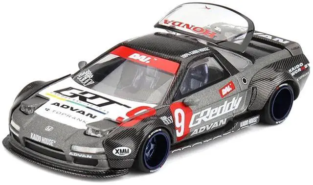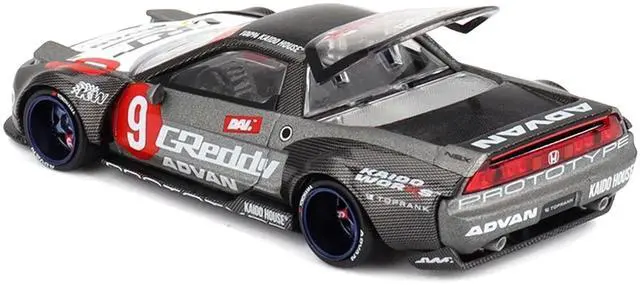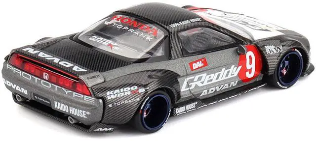Brand new 1/64 scale diecast car model of Honda NSX "Kaido Test Car Spec V1" #9 Gray Metallic with Carbon Top and Graphics (Designed by Jun Imai) "Kaido House" Special die cast model car by Mini GT.