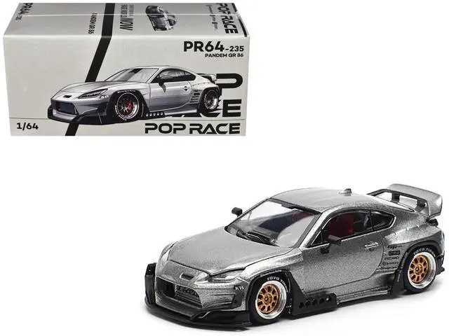 Brand new 1/64 scale diecast car model of Toyota Pandem GR86 Silver Metallic die cast model car by Pop Race.