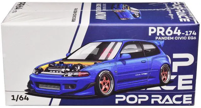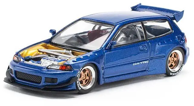 Brand new 1/64 scale diecast car model of Pandem Civic EG6 VTEC RHD (Right Hand Drive) Blue Metallic with No Hood die cast model car by Pop Race.