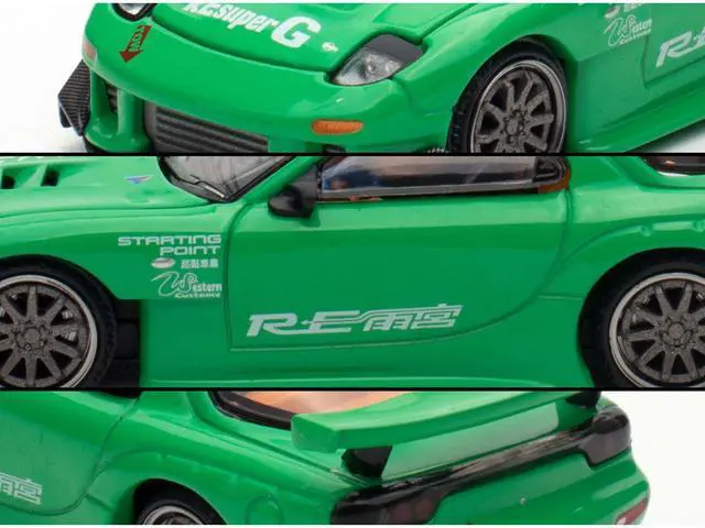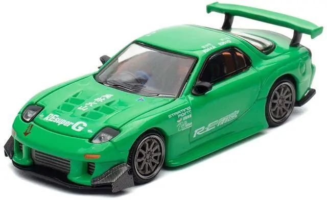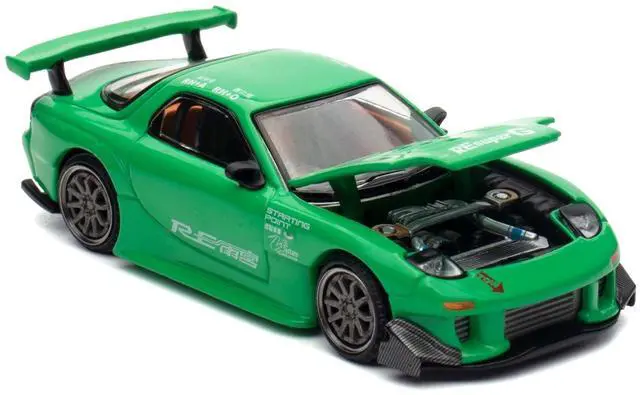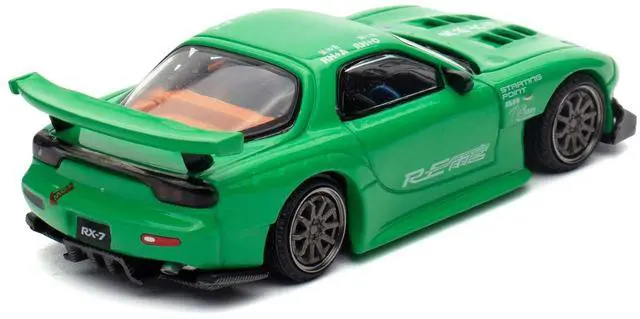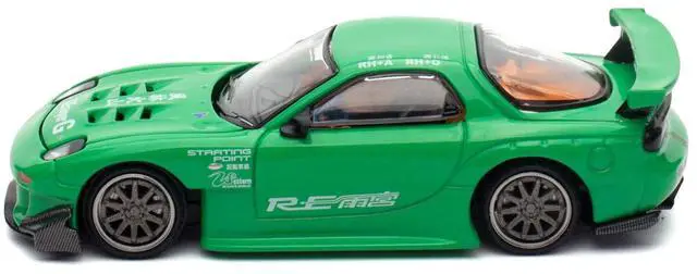 Brand new 1/64 scale diecast car model of Mazda RX7 "RE Amemiya" Widebody RHD (Right Hand Drive) Green die cast model car by Pop Race.