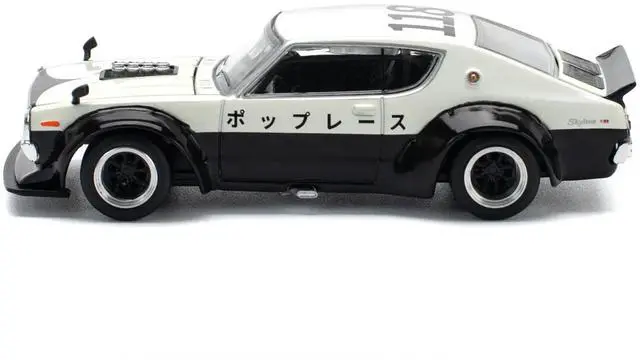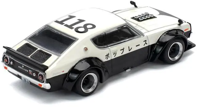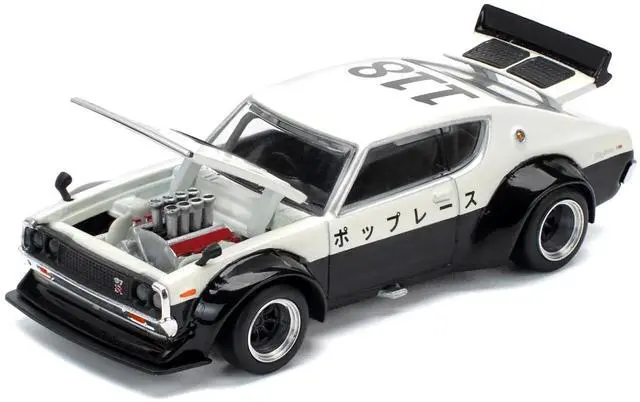 Brand new 1/64 scale diecast car model of Skyline KPGC110 "Kenmeri" RHD (Right Hand Drive) "Japan National Police Agency Livery" Black and White die cast model car by Pop Race.