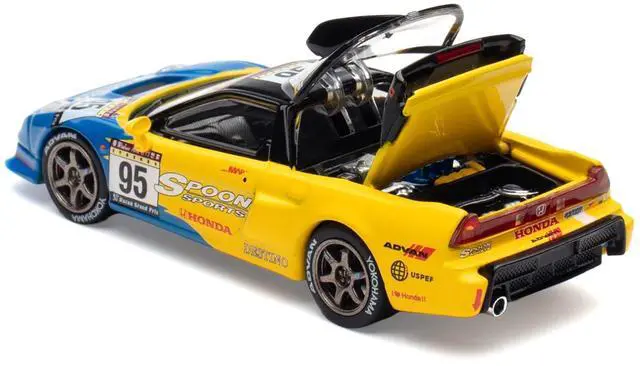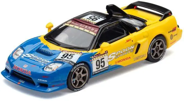 Brand new 1/64 scale diecast car model of Honda NSX-R GT RHD (Right Hand Drive) #95 Spoon Sports "Macau Cup" "Tokyo Auto Salon - Hong Kong 2025" die cast model car by Pop Race.