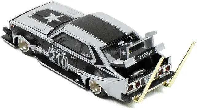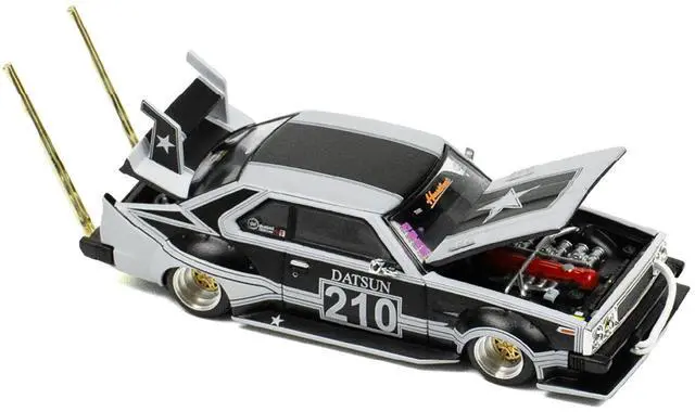 Brand new 1/64 scale diecast car model of Skyline C210 "Bosozoku Style" RHD (Right Hand Drive) #210 Matt Black and Silver die cast model car by Pop Race.