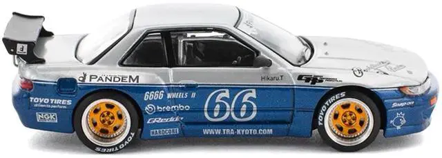 Brand new 1/64 scale diecast car model of Pandem S13 RHD (Right Hand Drive) Silver and Moontech Blue Metallic with Graphics die cast model car by Pop Race.