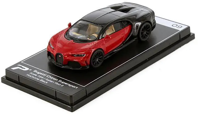 Brand new 1/64 scale diecast car model of Bugatti Chiron Supersport Italian Red and Nocturne Black "Hypercar League Collection" die cast model car by PosterCars.