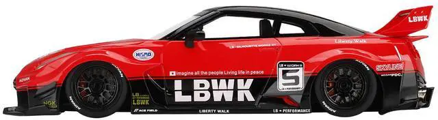 Brand new 1/18 scale car model of Nissan 35GT-RR Ver. 1 LB-Silhouette Works GT #5 RHD (Right Hand Drive) LBWK Red and Black model car by Top Speed.