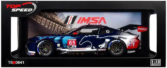 Brand new 1/18 scale car model of Ford Mustang GT3 #65 Christopher Mies - Dennis Olsen - Frederic Vervisch "Ford Multimatic Motorsports" GTD Pro Class Winner IMSA "24 Hours of Daytona" (2025) model car by Top Speed.
