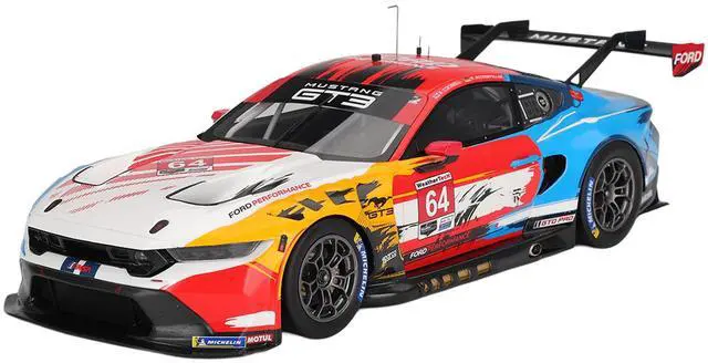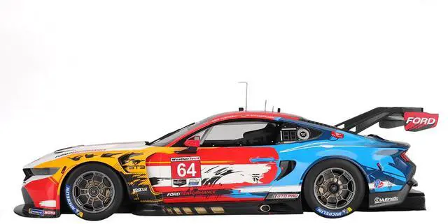 Brand new 1/18 scale car model of Ford Mustang GT3 #64 Mike Rockenfeller - Harry Tincknell "Ford Multimatic Motorsports" "Motul Course de Monterey - Laguna Seca" (2024) model car by Top Speed.