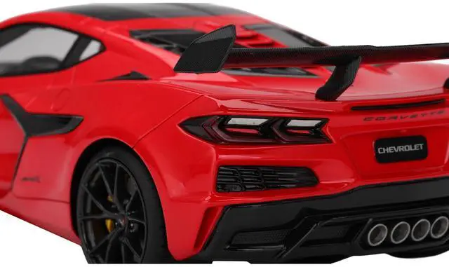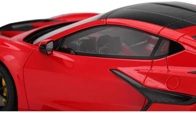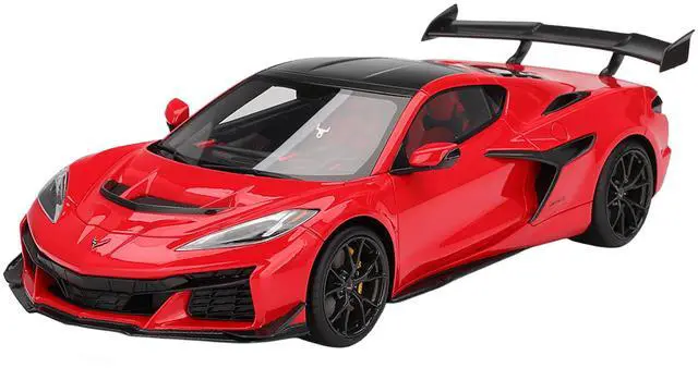 Brand new 1/18 scale car model of Chevrolet Corvette ZR1 Torch Red with Carbon Top model car by Top Speed.