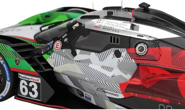 Brand new 1/18 scale car model of Lamborghini SC63 #63 Mirko Bortolotti - Romain Grosjean - Daniil Kvyat - Edoardo Mortara "Automobili Lamborghini Squadra Corse" IMSA "24 Hours of Daytona" (2025) model car by Top Speed.