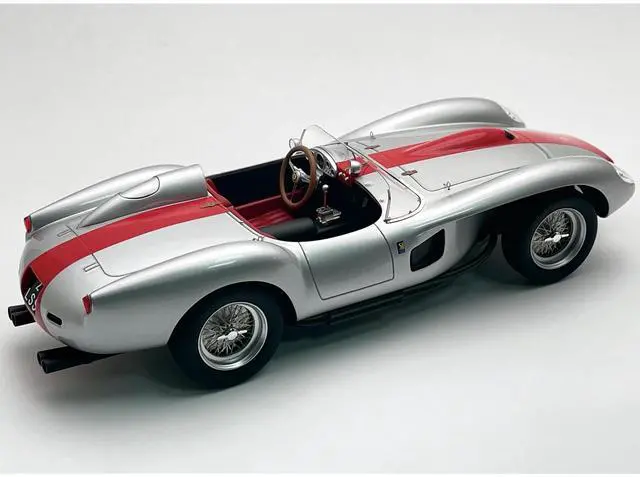 Brand new 1/18 scale car model of 1958 Ferrari 250 TR Pontoon-Fender "Street Version" Silver Metallic with Red Stripe "Mythos Series" with Display Case Limited Edition to 30 pieces Worldwide model car by Tecnomodel.