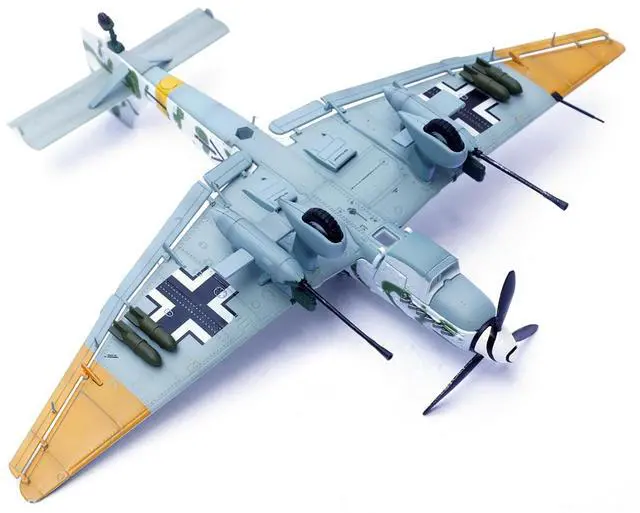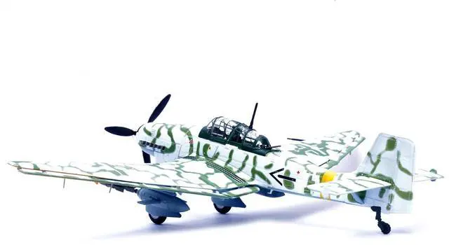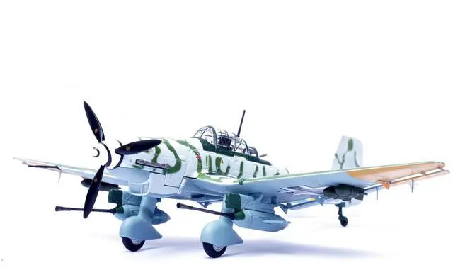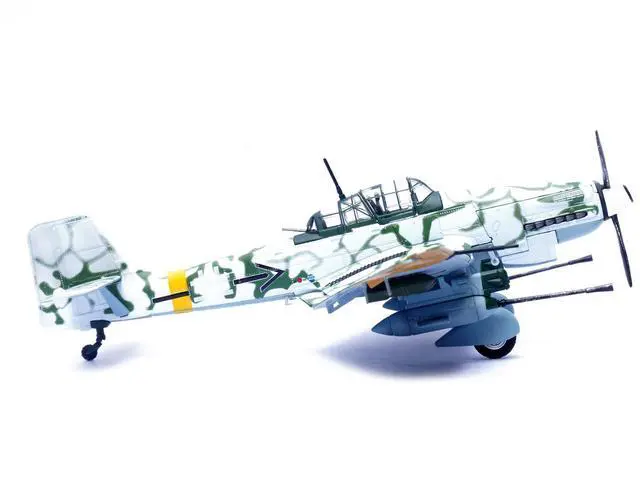 This 1:72 scale model meticulously rendered with the distinctive markings of 10. (Pz) /SG 2, captures the aircraft's rugged design and historical significance. From its iconic gull-wing structure to the detailed BK 37mm cannons, this replica is a must-have for aviation enthusiasts and history buffs alike, honoring the daring missions flown in Pomerania during the closing months of World War II.