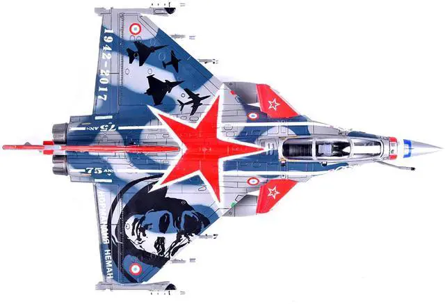Brand new 1/72 scale diecast model of Dassault Rafale C Fighter Jet "Regiment de Chasse 2/30 Normandie-Niemen" 75th Anniversary Edition with Missile Accessories "Panzerkampf Wing" Series die cast model by Panzerkampf.