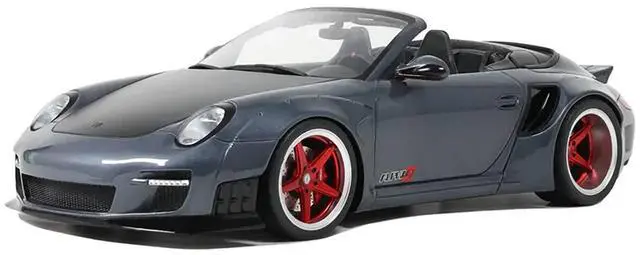 Brand new 1/18 scale car model of Porsche 911 LB-Works Alpha 9 Gray with Black Hood model car by GT Spirit.