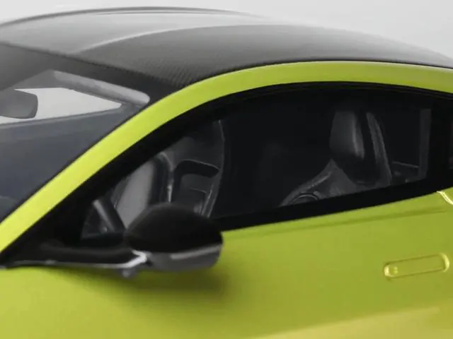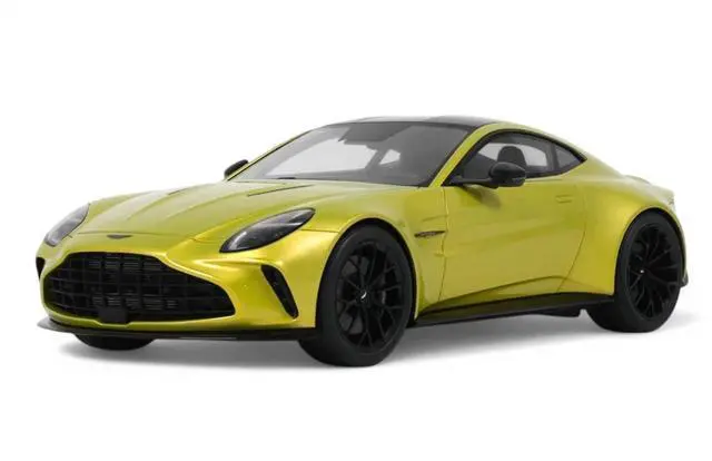 Brand new 1/18 scale car model of 2024 Aston Martin Vantage Cosmopolitan Yellow Metallic with Black Top model car by GT Spirit.