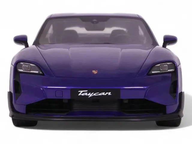 Brand new 1/18 scale car model of 2023 Porsche Taycan Turbo GT Purple Sky Metallic model car by GT Spirit.