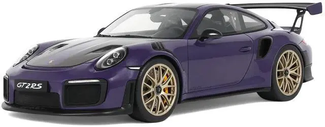 Brand new 1/18 scale car model of 2021 Porsche 911 ( 991.2 ) GT2 RS Ultraviolet Metallic with Carbon Stripes model car by GT Spirit.