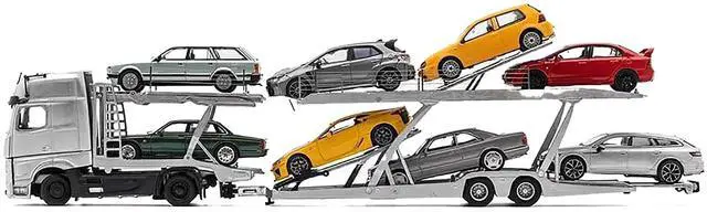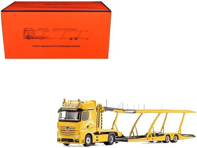 Brand new 1/64 scale diecast model of Mercedes-Benz Actros Auto Transporter Yellow die cast model by GCD.