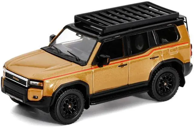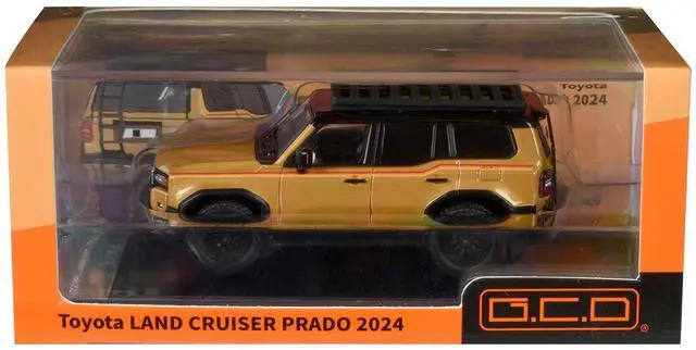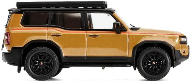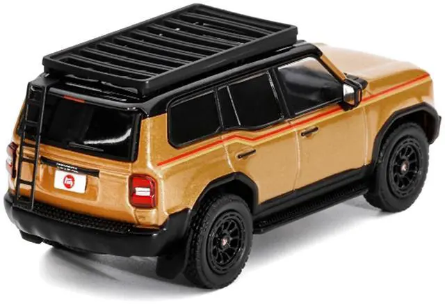 Brand new 1/64 scale diecast model car of 2024 Toyota Land Cruiser Prado Gold Metallic with Red Stripes and Roof Rack die cast model car by GCD.