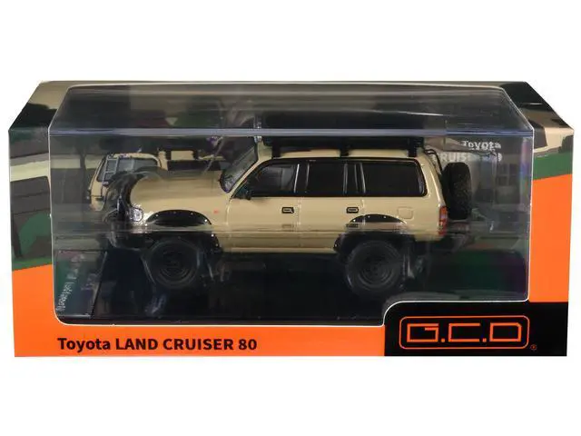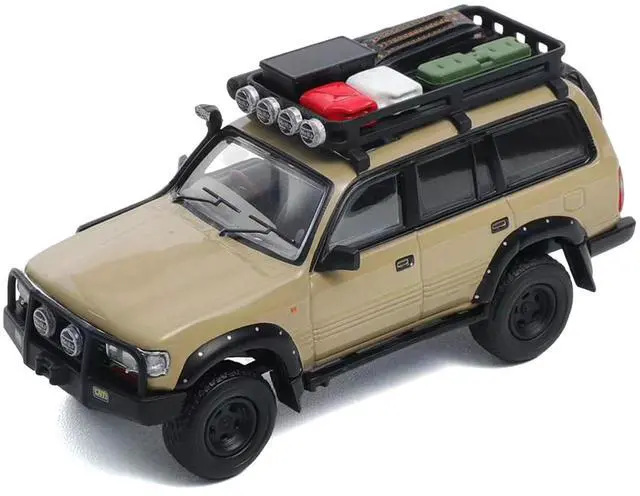 Brand new 1/64 scale diecast model car of Toyota Land Cruiser 80 RHD (Right Hand Drive) Beige with Roof Rack and Accessories die cast model car by GCD.