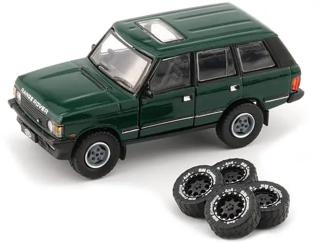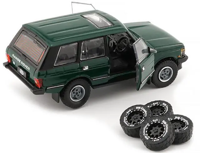 Brand new 1/64 scale diecast car model of Land Rover Range Rover Classic LSE RHD (Right Hand Drive) Green with Sunroof with Extra Wheels die cast model car by BM Creations.