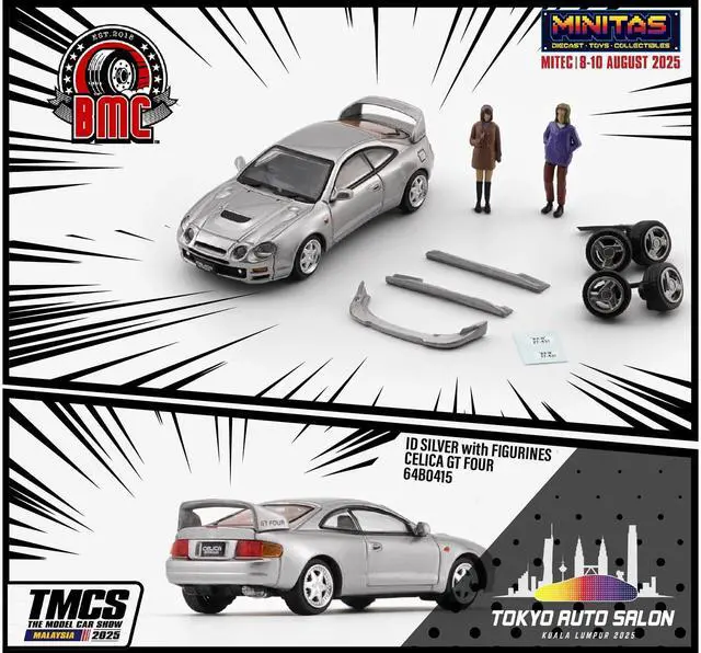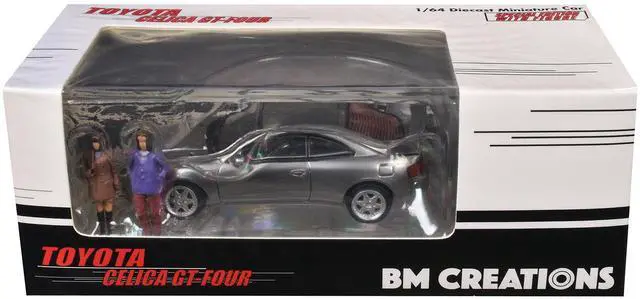 Brand new 1/64 scale diecast car model of Toyota Celica GT-Four RHD (Right Hand Drive) ID Silver Metallic with 2 Figures and Accessories die cast model car by BM Creations.