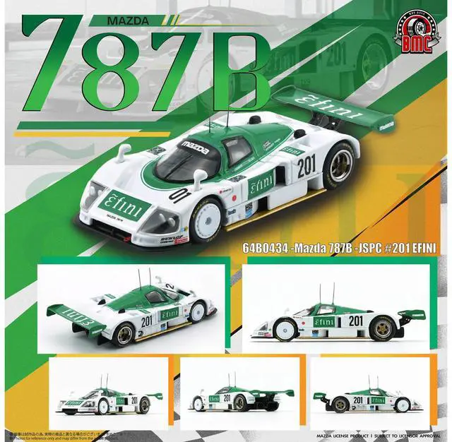 Brand new 1/64 scale diecast car model of Mazda 787B #201 Johnny Herbert - Maurizio Sandro Sala "Efini" "All Japan Sports Prototype Car Endurance Championship" (1991) die cast model car by BM Creations.