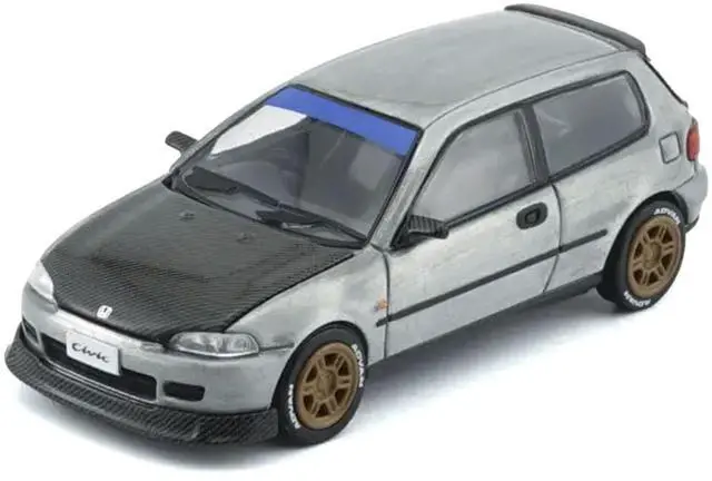 Brand new 1/64 scale diecast car model of Honda Civic EG6 RHD (Right Hand Drive) Raw Metal with Carbon Hood with Alternates die cast model car by BM Creations.