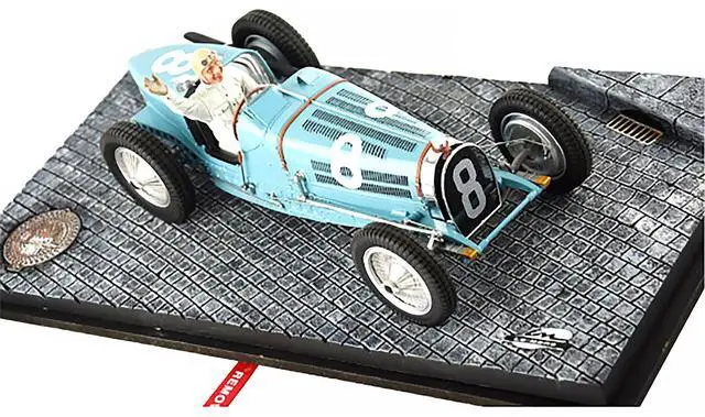 Brand new 1/18 scale models of Bugatti T59 #8 Rene Dreyfus 3rd Place Monaco GP (1934) with Driver Mounted and Etorre Bugatti and Jean Bugatti Figures resin models by Le Mans Miniatures.