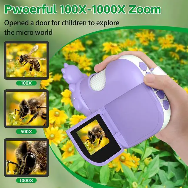 1. Explor with 100X-1000X Magnification: Discover with our kids portable microscope's 100X-1000X magnification range, perfect for kids exploring intricate specimen details.