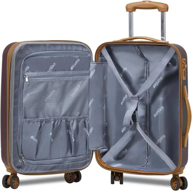 Built-in TSA three-digit combination lock, spinner wheels, dual interior compartment, compression straps, zipper mesh accessory pocket and shoe pocket