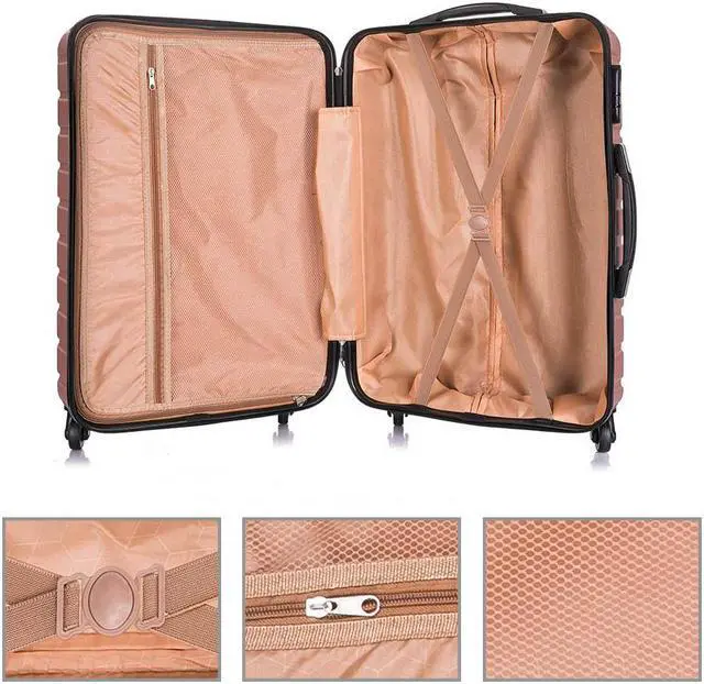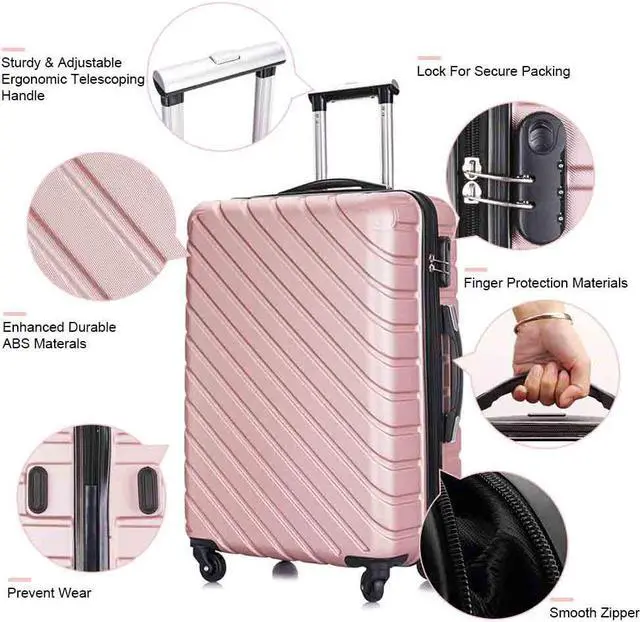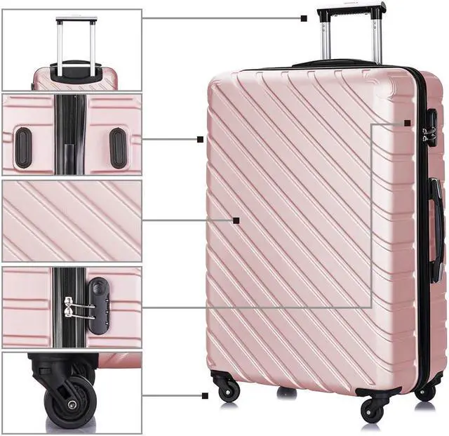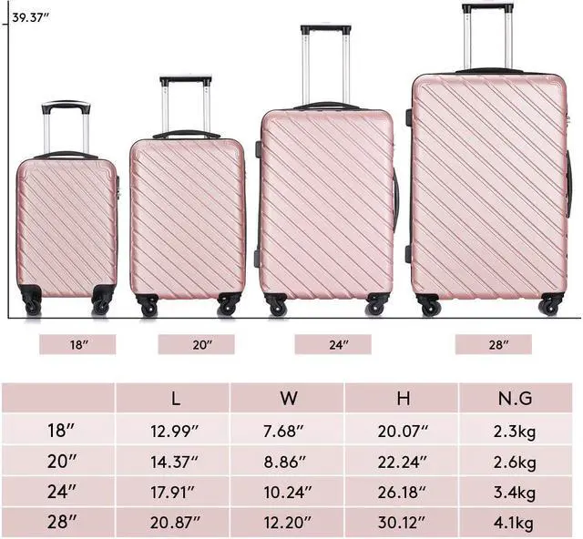 The 4 piece luggage sets include one 18 inch, 20 inch, 24 inch and 28 inch suitcase, which allows you to assign all your clothes in perfect order for your own needs and preferences. This extremely lightweight and durable spinner features ABS,a privacy curtain with its own zippered organizational pockets. No matter the multi-directional wheels, or the ergonomically designed telescoping handles will add much convenience to your trip. The spacious main compartment and zippered pockets keep your travel essentials, your small valuables well organized. This carry on luggage sets with spinner wheels is perfect forany trip you may have.