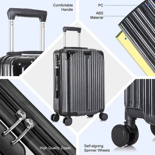 4 piece set of hardside spinner luggage (16" 20" 24" 28" sizes) for work travel, vacations, or as international carry-on.