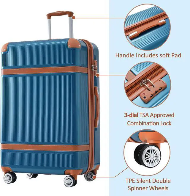 Hardshell Luggage Sets 3 Piece double spinner 8 wheels Suitcase with TSA Lock Lightweight 20''24''28'' Blue