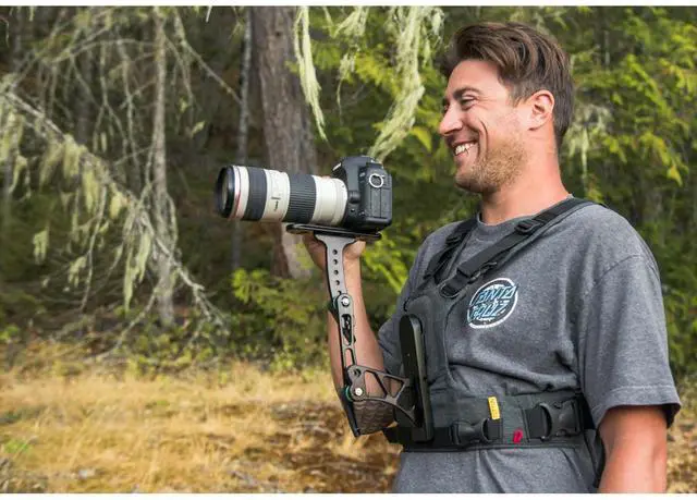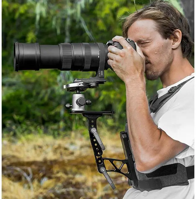 Are you in search of a durable and reliable solution for your big lens camera support and DSLR video making needs Look no further than the revolutionary Steady Shot by Cotton Carrier. This high-quality, hard-anodized aluminum bracket is designed to seamlessly integrate with the Cotton Carrier Camera Vest, offering rock-solid, comfortable support for your camera. The Steady Shot features a versatile mounting plate equipped with numerous 1/4" threaded and non-threaded holes, providing flexibility for various camera setups. Whether you're a wildlife photographer needing quick-release clamp compatibility or a videographer seeking to attach a fluid video head for superior video production, the Steady Shot has you covered.