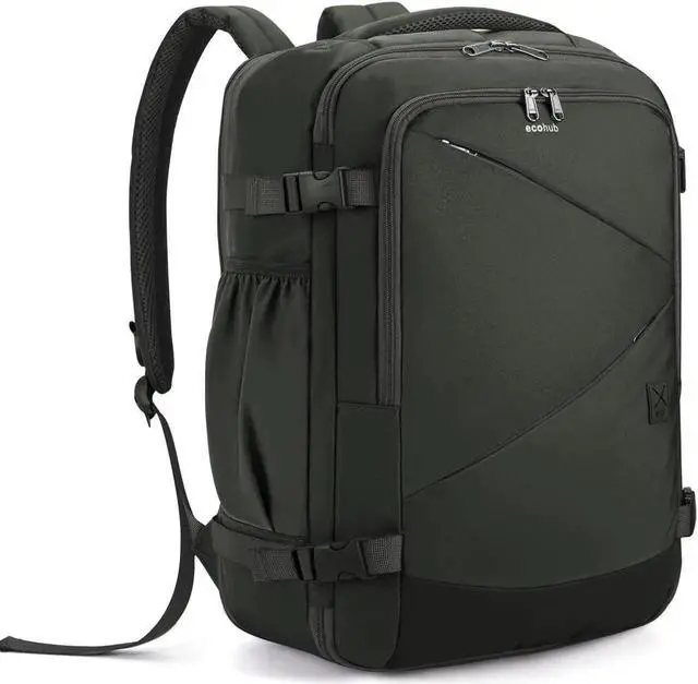 ECOHUB Carry On Travel Backpack, Expandable Airlines Personal Item Bag 18x14x8, Water Resistant 17 inch Laptop Backpack Flight Approved, 12 Pockets 30L Work Backpacks with Wet Pocket & Cable Slot