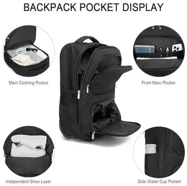 seyfocnia Rolling Backpack,Travel Bag with Shoe Compartment Roller Backpacks Wheeled Business Backpack Luggage Carry on Backpack with Wheels for Men Women-Black